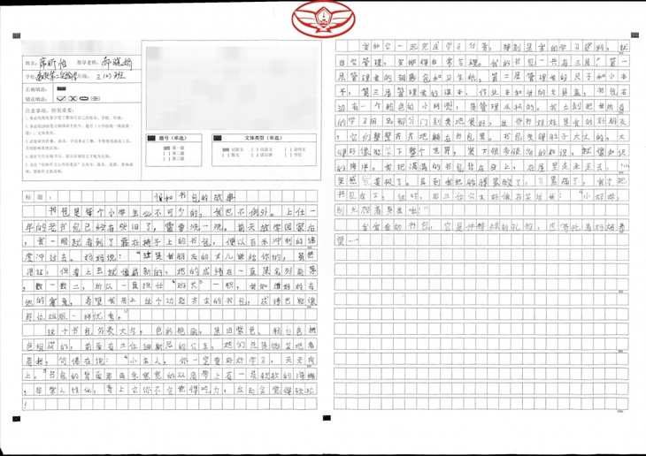 拿到一个作文题目,审题很关键,只有抓住了题目中的关键要素才能切入主题。本文抓住了“书包”和“故事”两个关键词,既有对书包样子和构造详细生动的描写,也有对书包特殊来历的叙述,并且在书包上寄予了深刻的含义——妈妈的殷切希望,这样就深化了这个我与书包的故事。