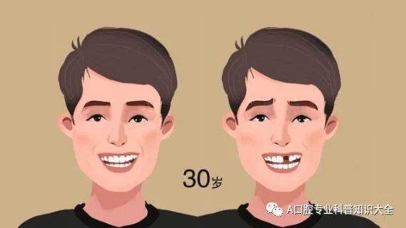 因为缺牙,会导致偏侧咀嚼,变成大小脸;牙齿缺失严重,还会导致牙槽骨吸收,下巴往前凹,显老。