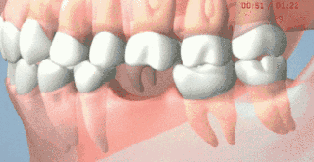 因为原先的位置已经没了,为了空出位置,牙医得把对咬牙磨短、或用矫正器矫正。