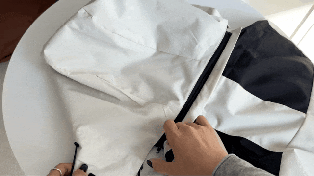 即便遇上下雨,雨滴在衣服表面像荷叶一样滚落没有一丝渗透,完全不怕突发小雨。