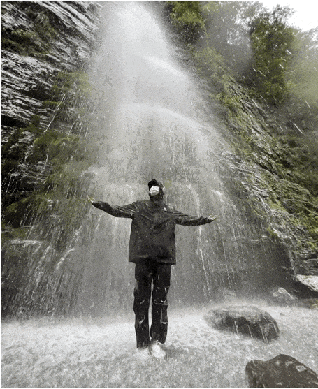 等雨停了,衣服甩一甩就干爽如初,不黏身、不影响徒步。