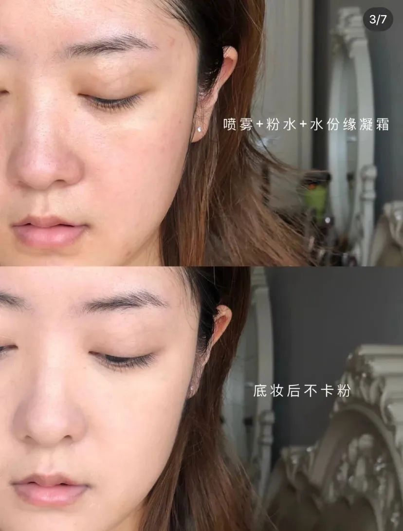 但是我上妆前在脸上拍一层粉水以后,脸上皮肤会滑滑的。