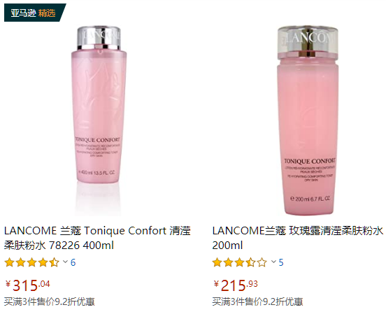 买3瓶相当于入手了一支400ml的大瓶了,价格也才232,算下来一瓶最低77元!