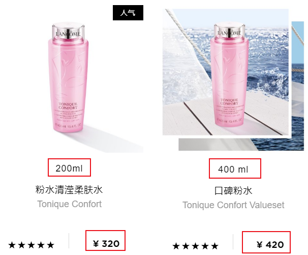 兰蔻粉水定价就很实在,不过即便如此,价格也要去到400+,学生党、毕业党心痛痛。