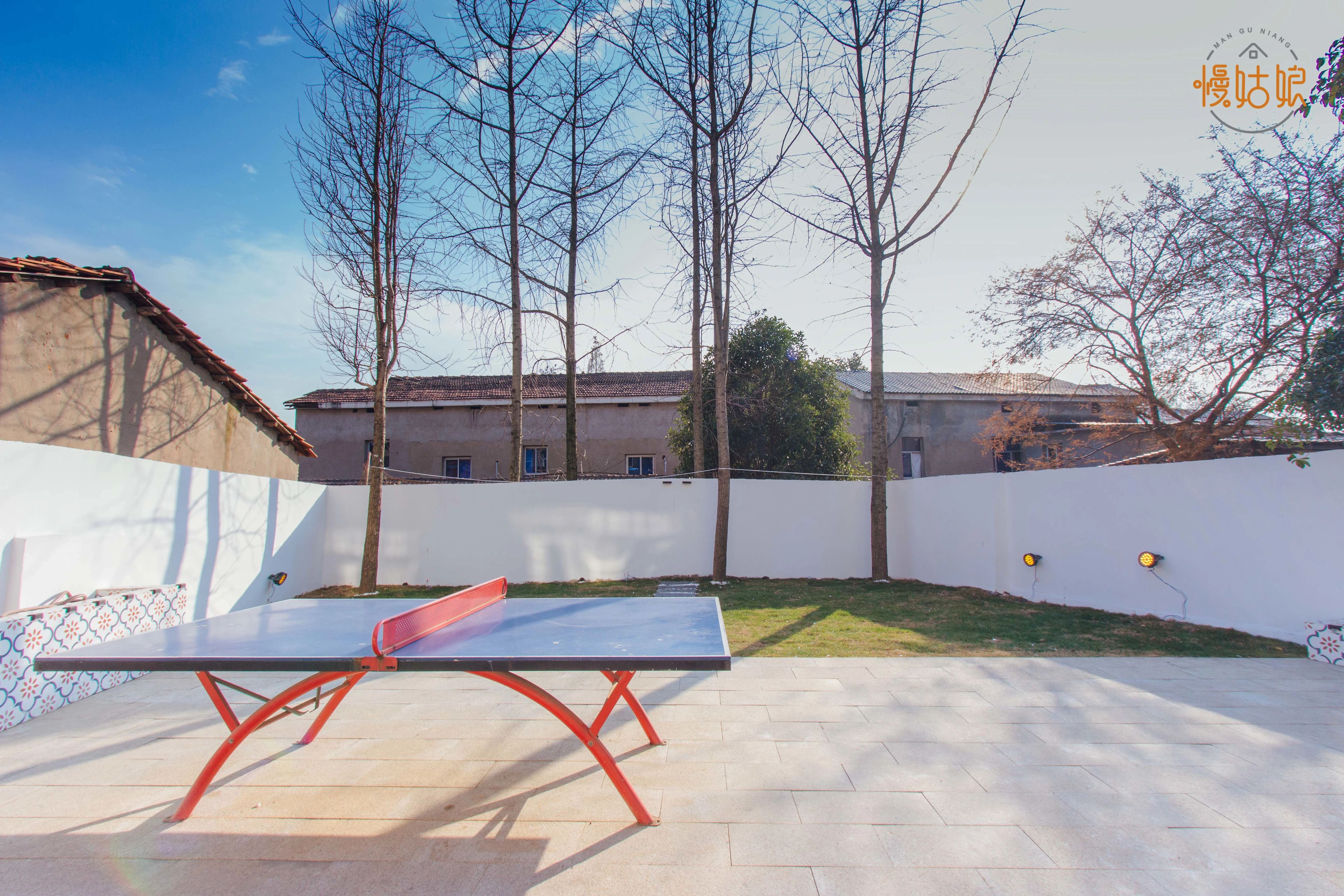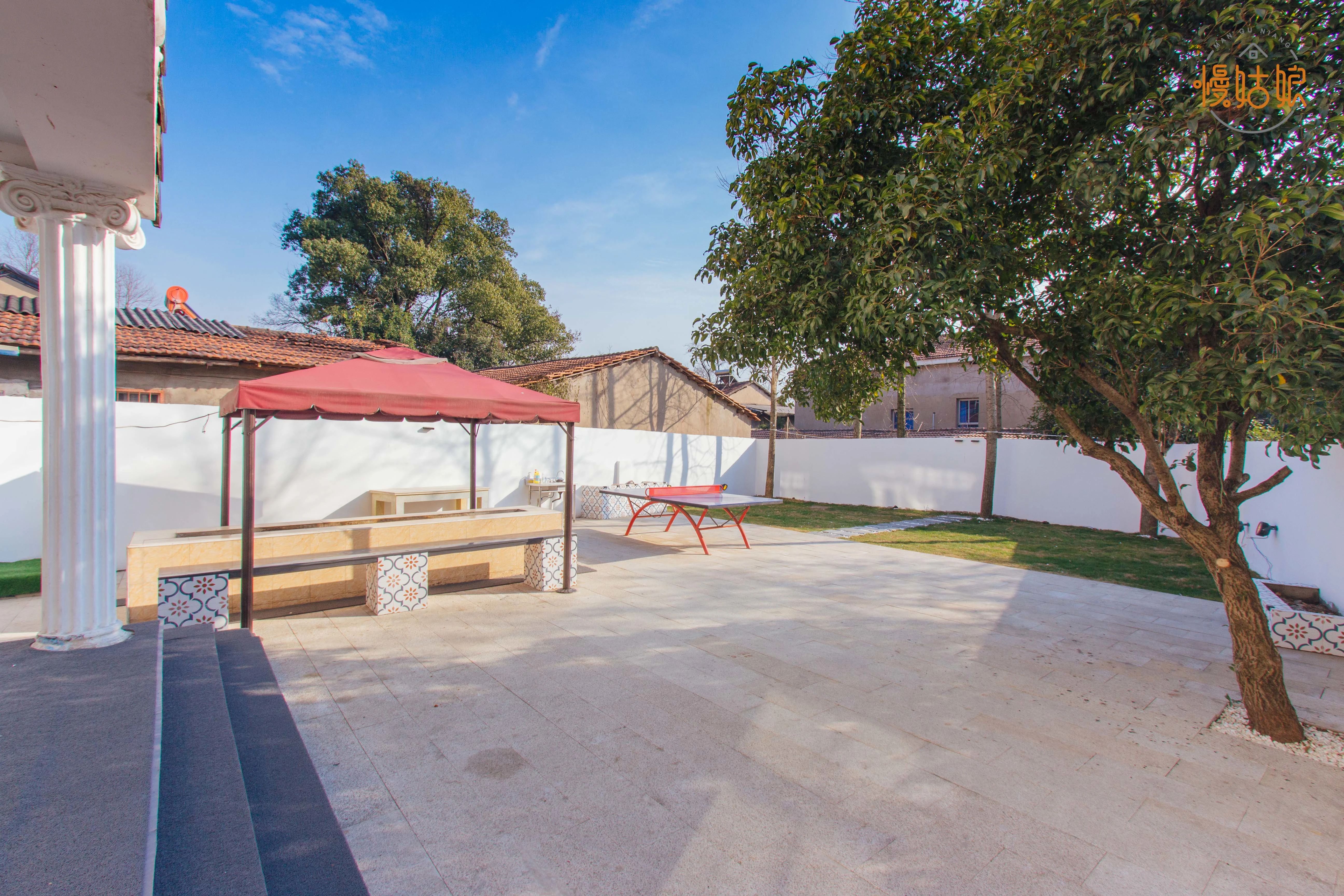 配置:前院:秋千+户外桌椅、后院:休闲桌椅+室外烧烤架+室外乒乓球+小草坪