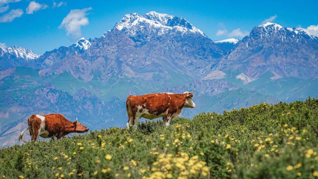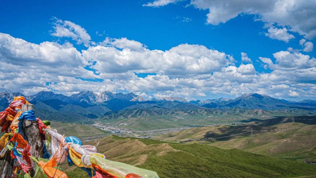 牛心山,藏语称为阿咪东索,意为众山之神,镇山之山,是位于县东南2公里处的山。其作为祁连的象征,巍峨高耸,一山尽揽四季之景。牛心山海拔4667米,山头底部麦浪翻滚,油菜花香,一派高原河谷的农家景象,向上绿草如茵、鲜花艳丽 ,是优良的牧场。