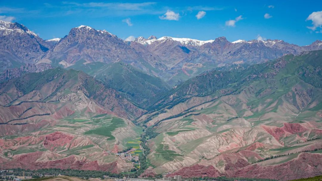 西端在当金山口与阿尔金山脉相接。东端至黄河谷地,与秦岭、六盘山相连。长近1000千米。属褶皱断块山。最宽处在酒泉市与柴达木盆地之间,达300千米。