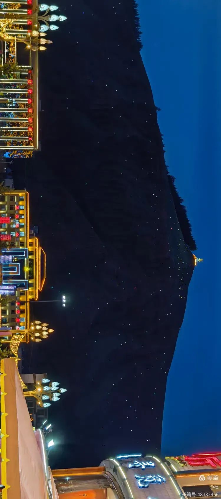 县城背靠著名的卓尔山,晚上9点左右面向县城的一面,亮起了星星样的灯光。