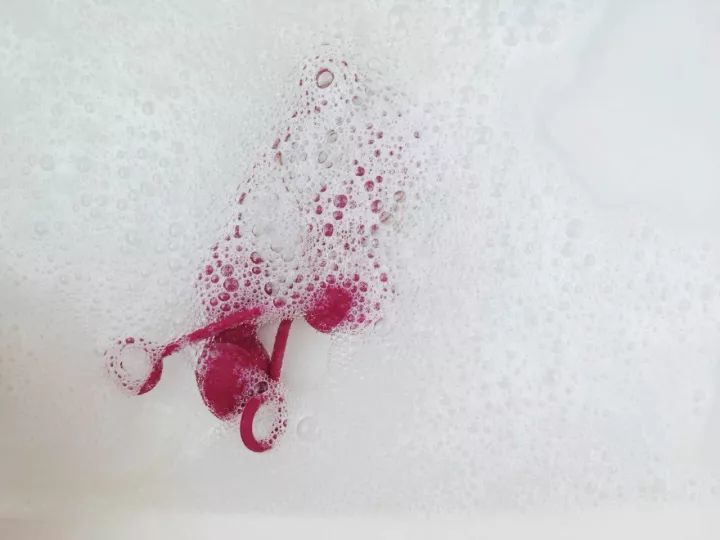 然后就是清洗工作,我用了玩具专用清洗液(青杏市集有售哦),第一次用,所以浸泡了一段时间,水的颜色还是清的,所以不存在脱色之类的问题,可以放心使用。