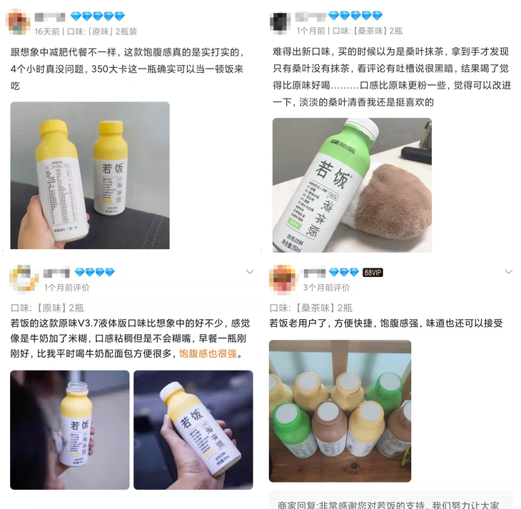 侧重饮食效率,无需冲泡,常温保存,开盖即饮,1分钟9分饱,随时搞定一顿饭。