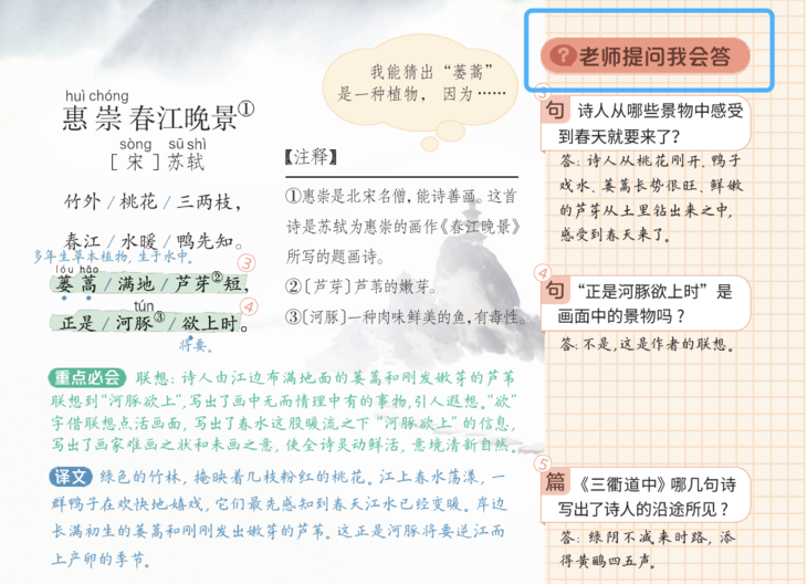 侧栏批注,互动式引导提问,还原课堂互动场景,培养孩子主动思考的能力