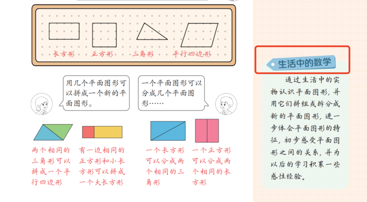 建立本讲知识与生活的关联,培养孩子对数学的兴趣和感知