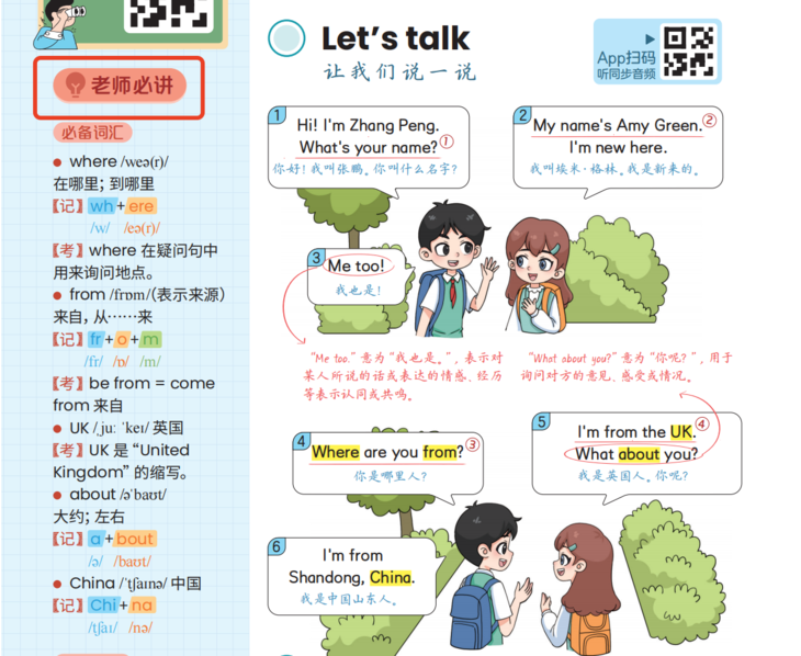 侧栏批注,还原课堂老师讲到的单词、语法、句型等知识,学生可直接当作笔记使用