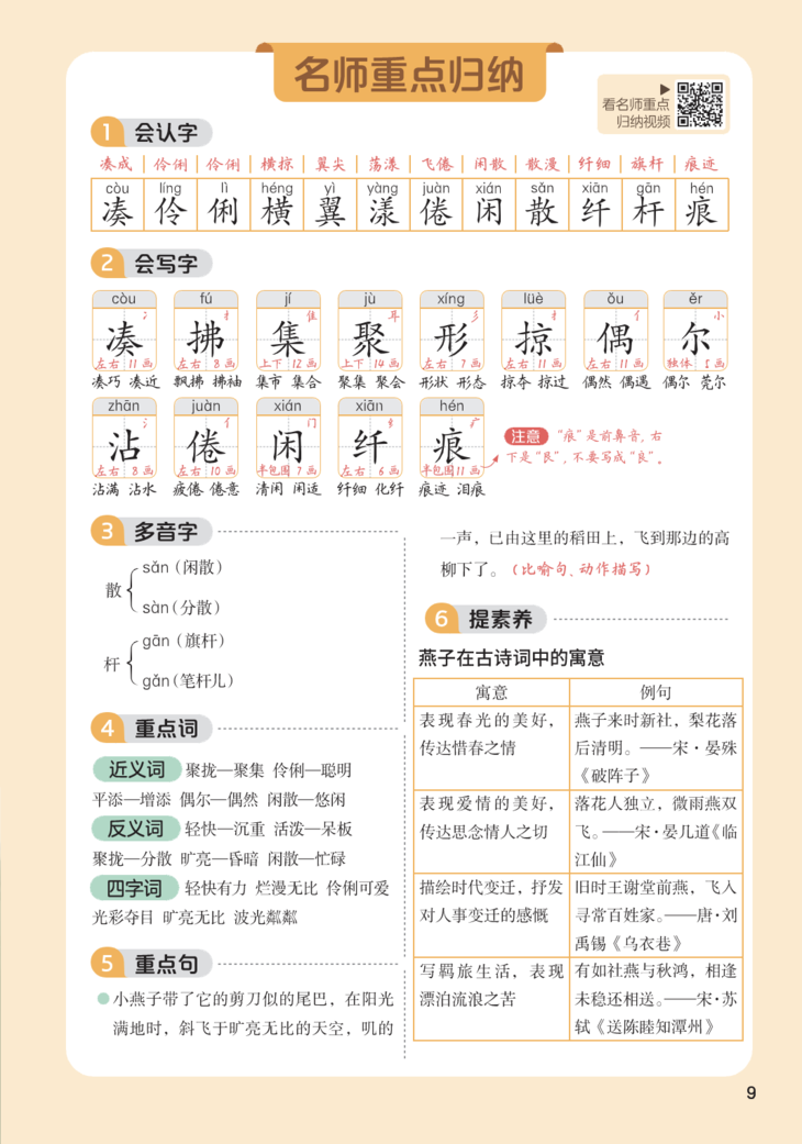 每节课后对本讲的重点知识归纳,包含字词、拓展内容等