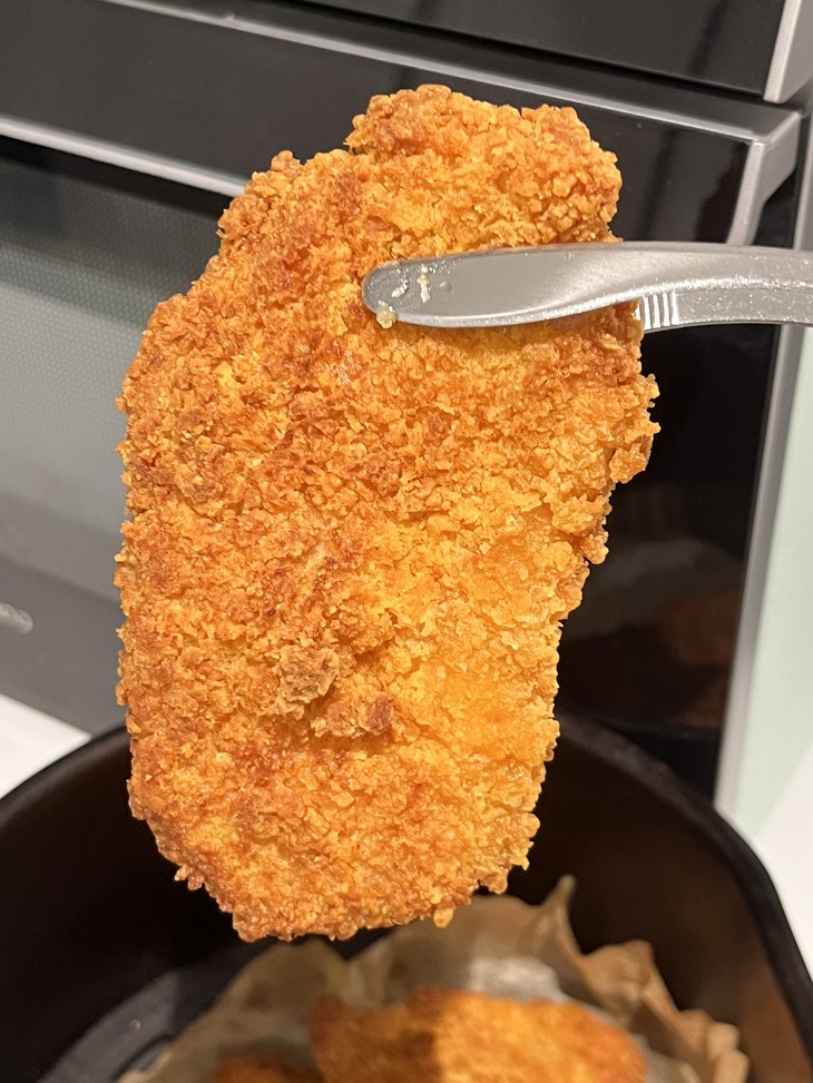 每包有300g,共3片,都是原肉整切,肉质紧实鲜香,裹粉很轻薄~