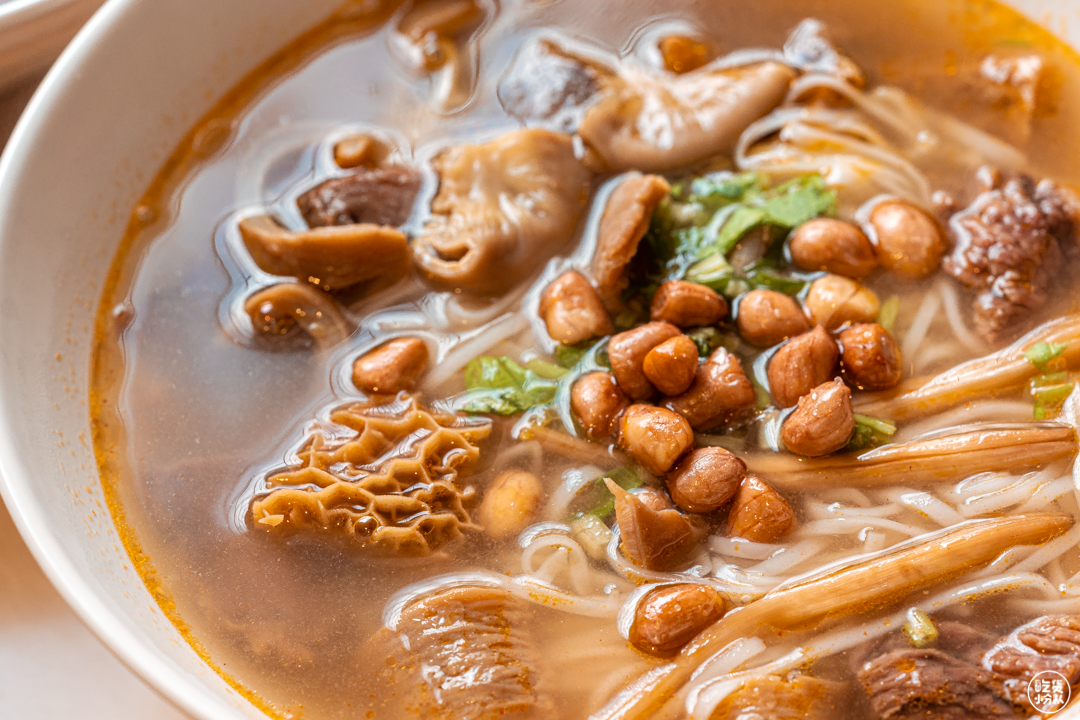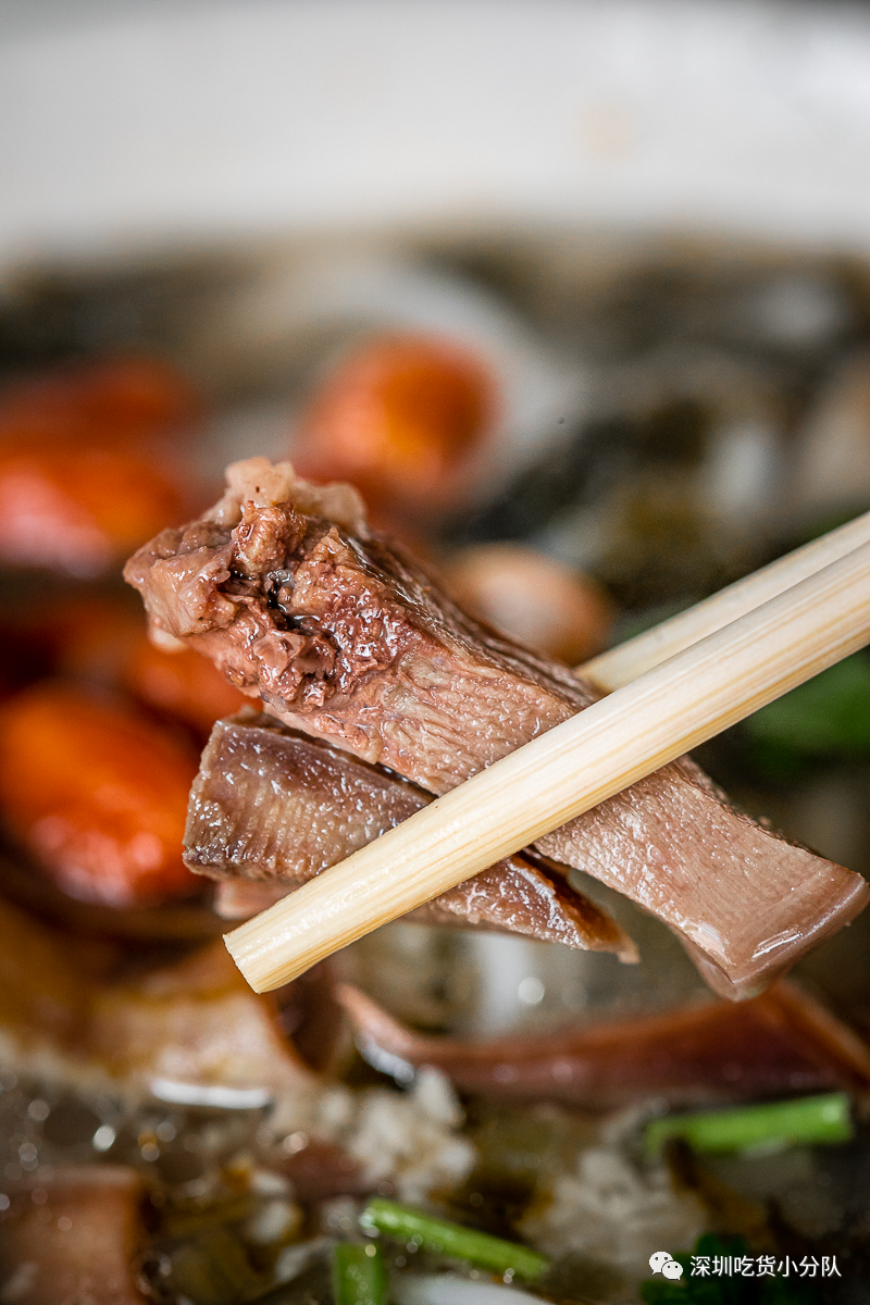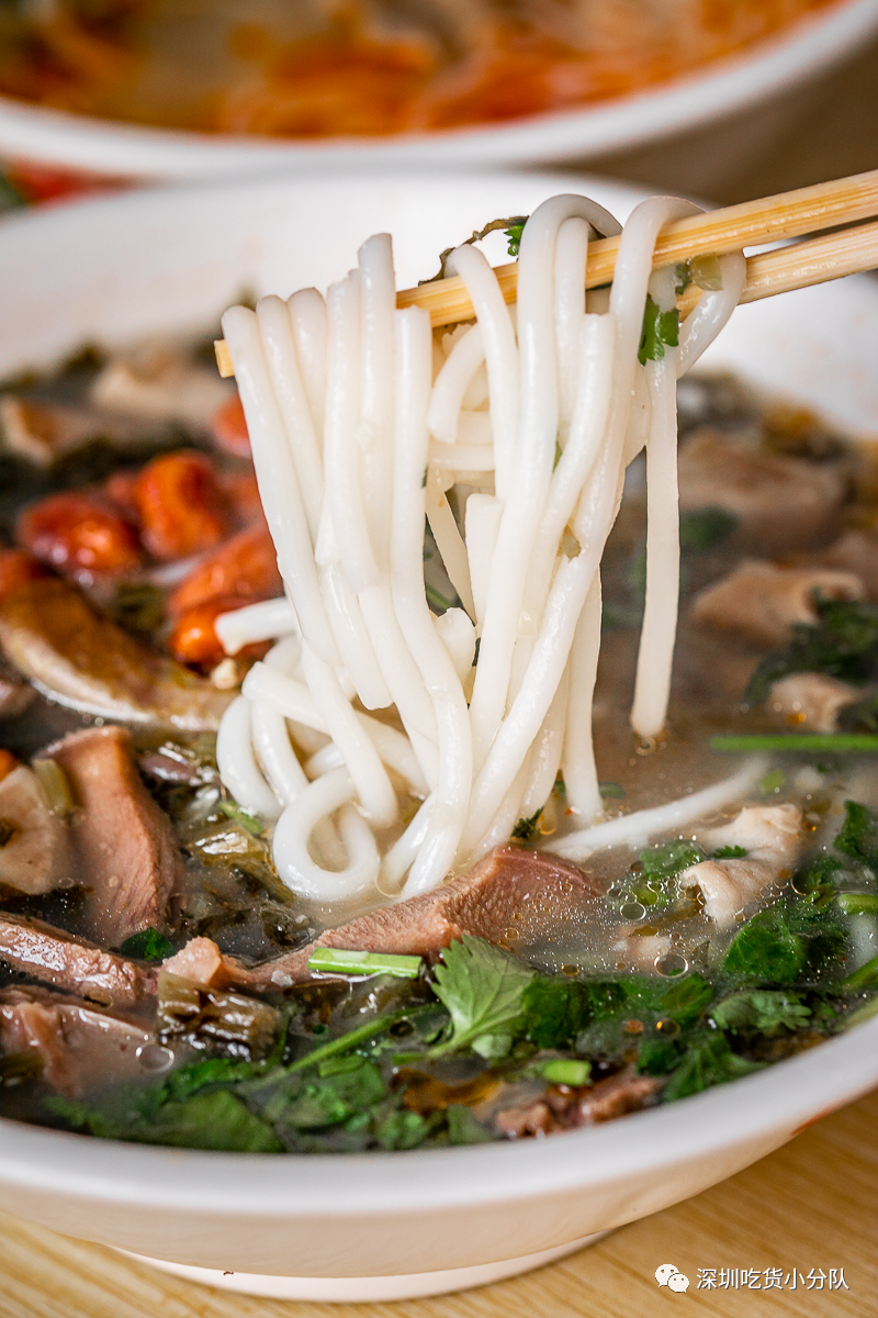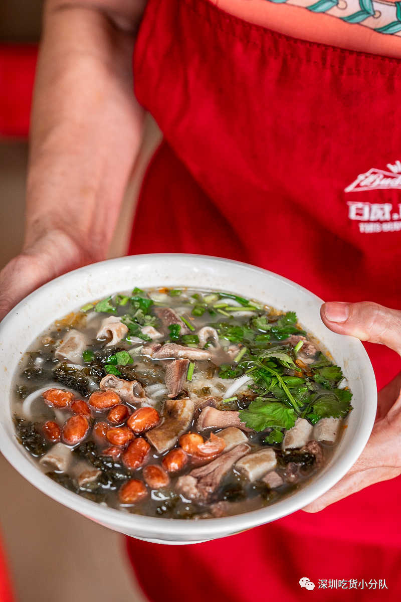 来这吃饭,首点一份猪杂莲藕汤米粉。猪杂满满地铺在汤粉上,藕汤鲜甜,莲藕炖得粉糯拉丝,一口汤、一口粉,还能再蘸点普宁梅子汁提味。旁边的小朋友也是常客了,“妈妈懒得做饭,就会带我来吃。”