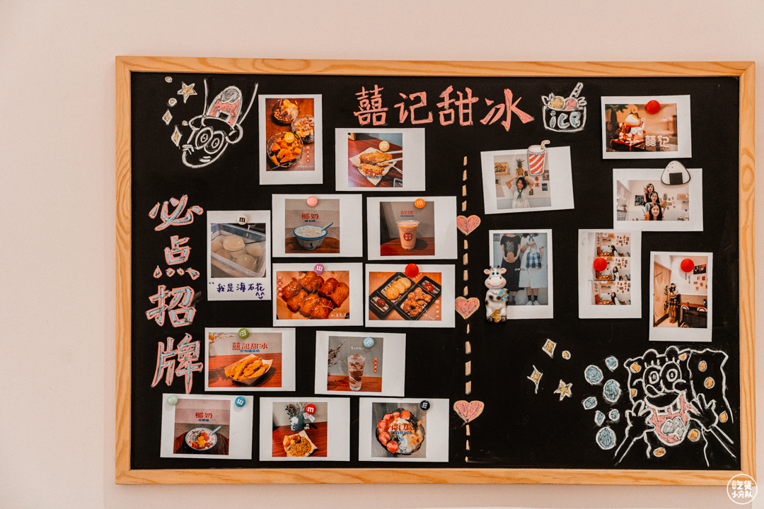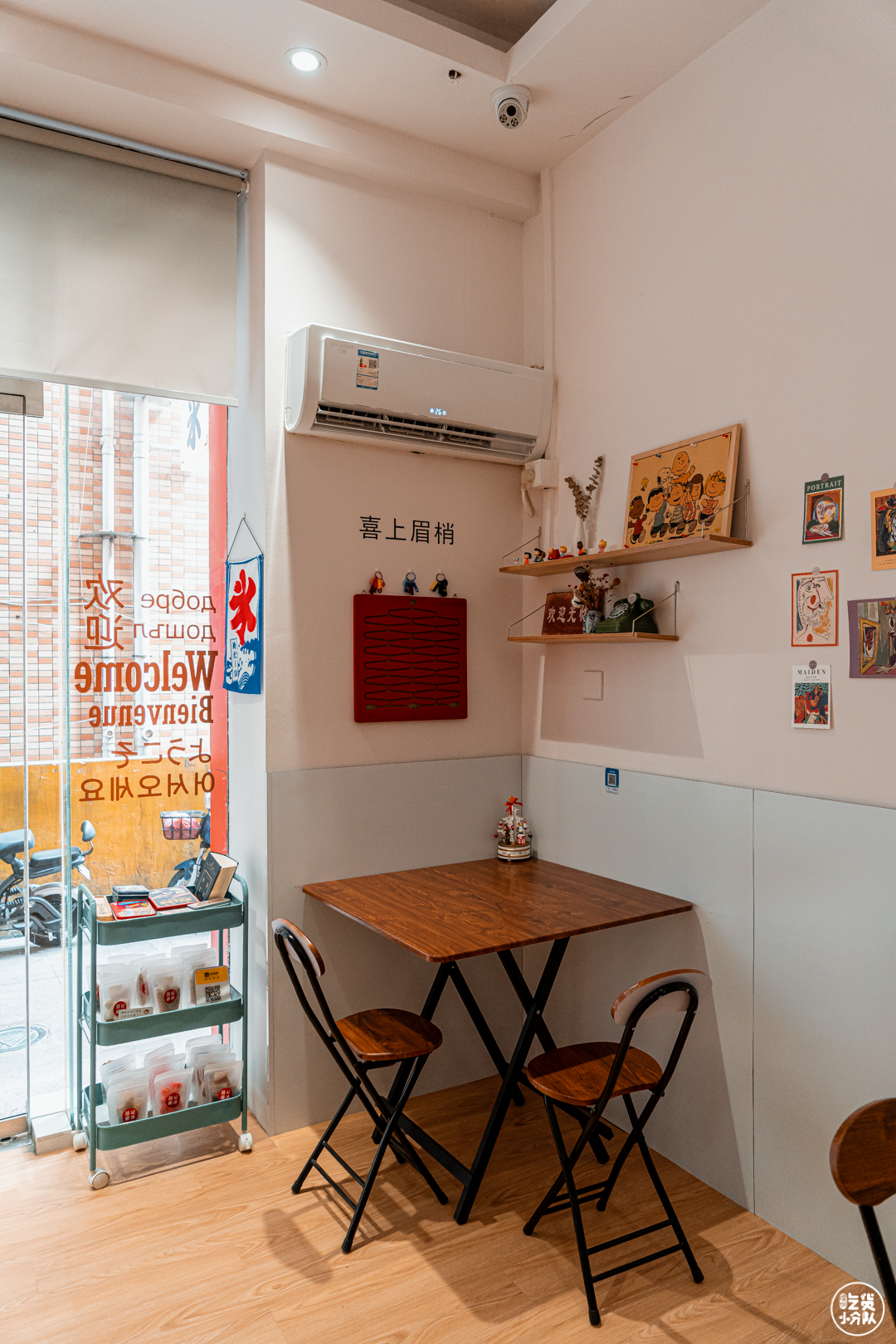 光看它家清新复古的店面,怎么也想不到是家开在城中村里的小店。3-4张桌,街坊邻居跟老板都很熟。墙上贴着的复古画饰,老板娘亲手绘制的推荐菜牌,还有一面留有食客回忆的照片墙,满满的人情味,让人驻足。