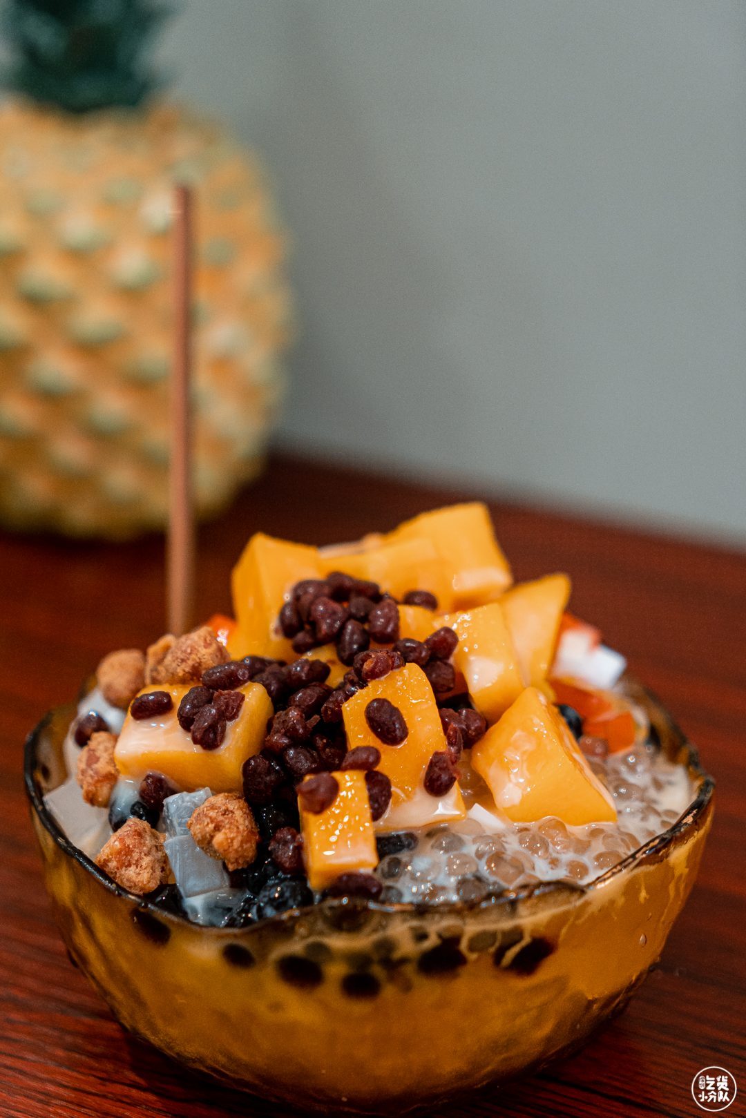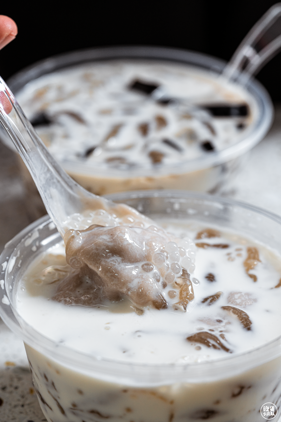 双头尖的主要原料是红薯粉,因为样子像水滴被称为“双头尖”。老板娘说,“其实我们老家都叫它‘老鼠仔’,名字不好听,就没用啦。”点了一份鲜奶双头尖,还加了芋泥,双头尖软糯有嚼劲,芋泥细腻香甜,做饭后甜点相当不错。