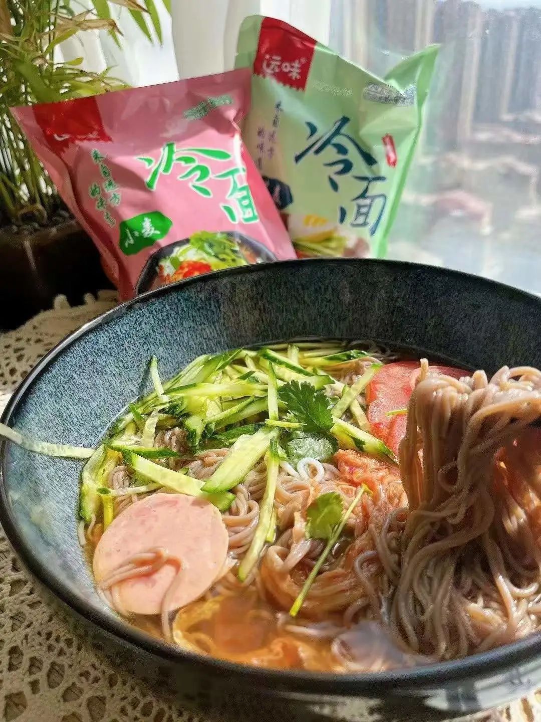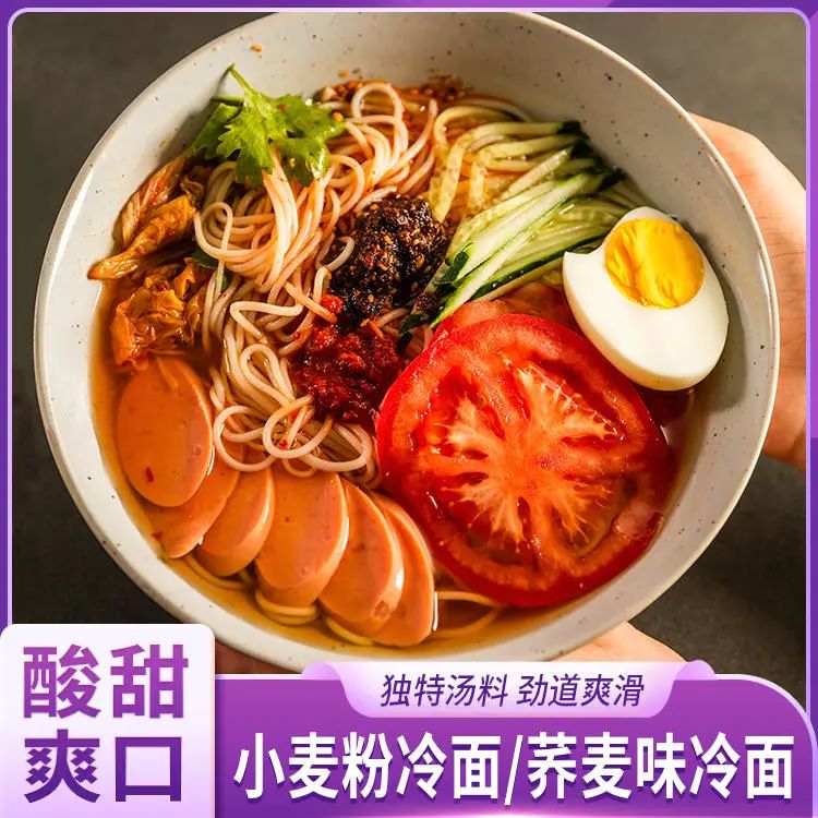 如果吃够了酸甜口的大冷面,你还可以用它做个凉拌面,冷的能被小冰碴冻一激灵,阴雨天,也可以做个冷面热做,咋做都合口味。