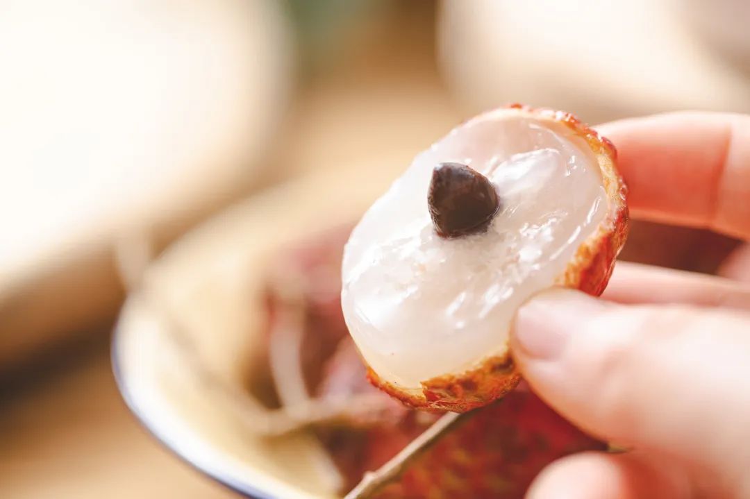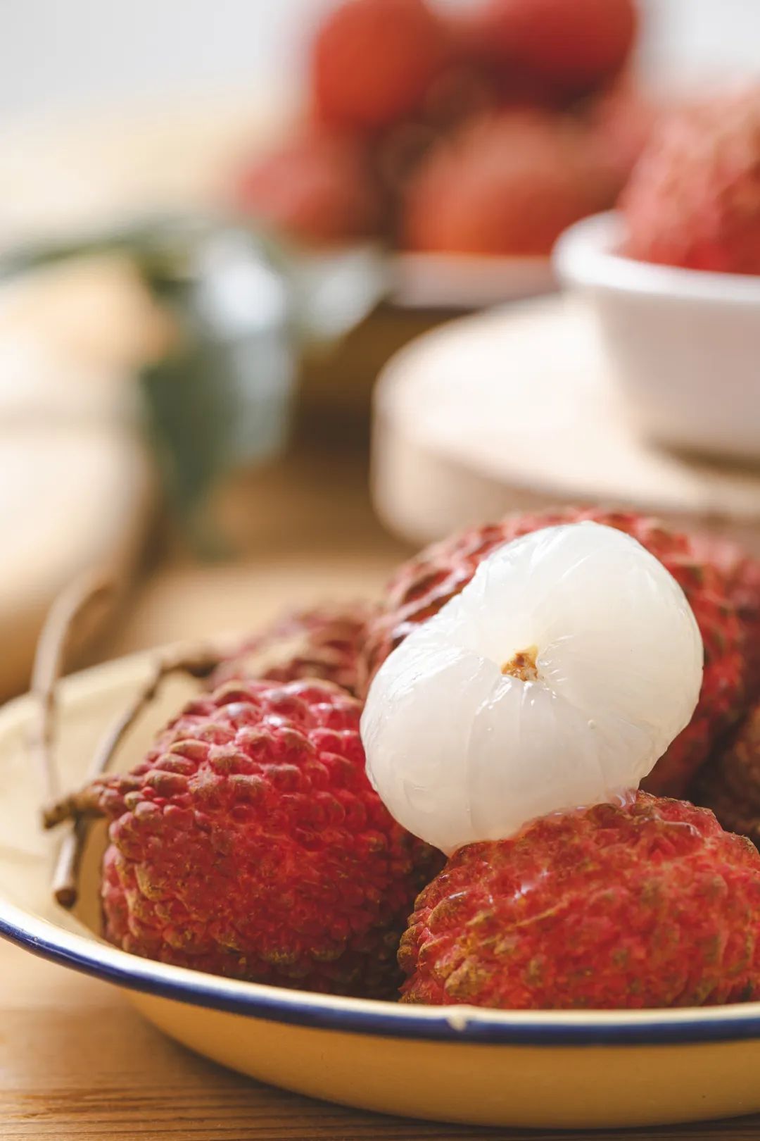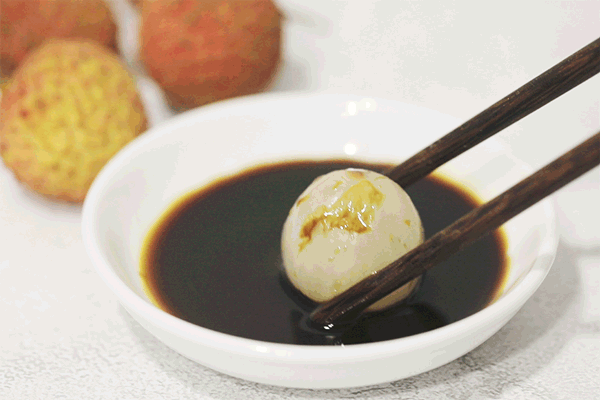 酱油要选酿造生抽酱油,有条件可用头抽。剥好的荔枝在酱油里滚一圈,咸味和酱味能让荔枝的甜味更突出,甚至能诞生一抹鲜味;而且能解腻消食,一定程度上减缓“荔枝病”(低血糖),有了酱油,就可以放心吃荔枝了。