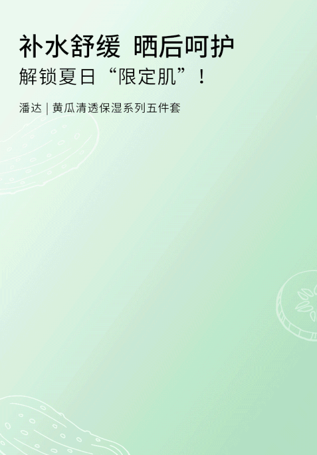 很多姐妹认识潘达,都是从黄瓜套装开始的,夏天必不可少的万能护肤法宝,晒红用它可立刻恢复,好用到多次卖到断货!