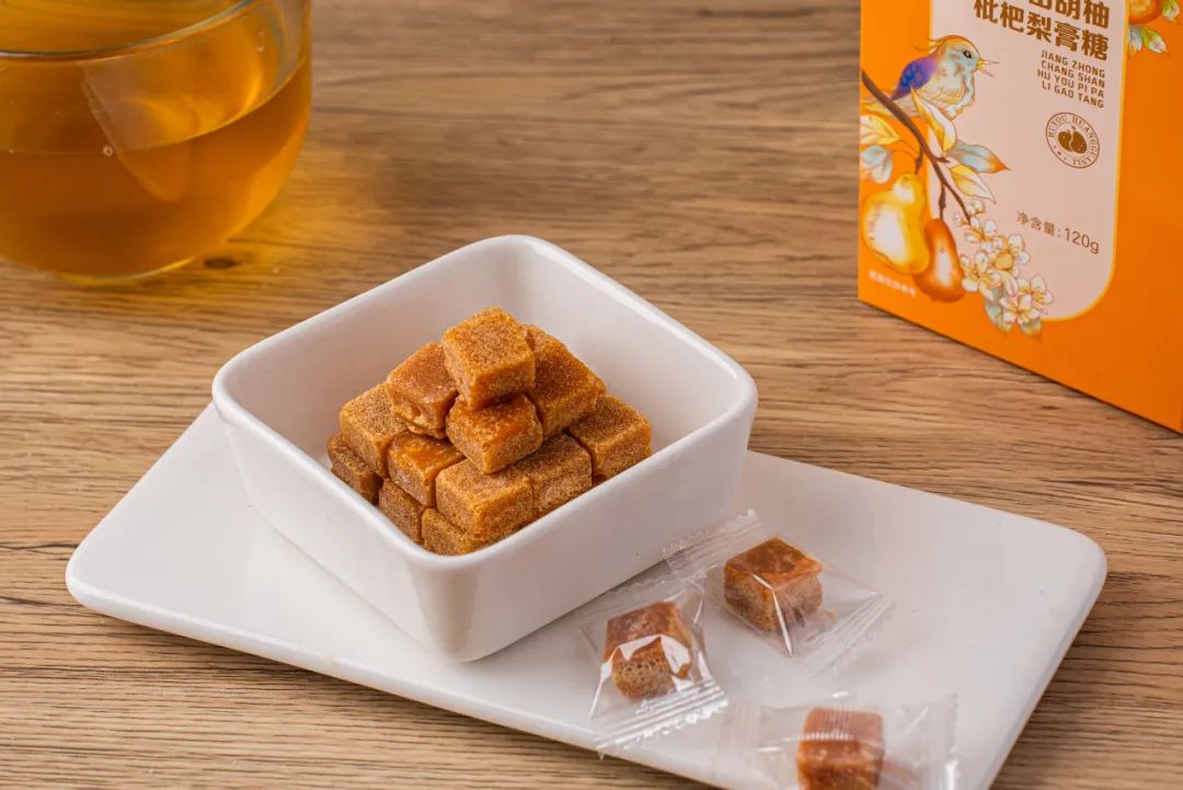一块小小的梨膏糖,凝聚了胡柚、枇杷、薄荷等多种食材。