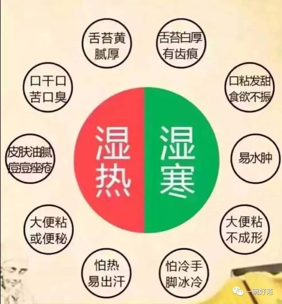 诸如上图湿热与湿寒的表现是不一样的,所以我们需要辩证施治,调养也是如此 。