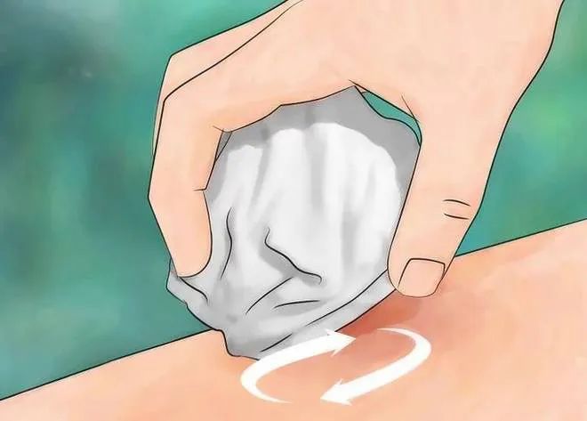 然后,用一块冰凉的敷布敷在伤口处。你可以将冰裹在干净的毛巾上,或将冰放入塑料袋中,然后将其包裹在干净的毛巾中。