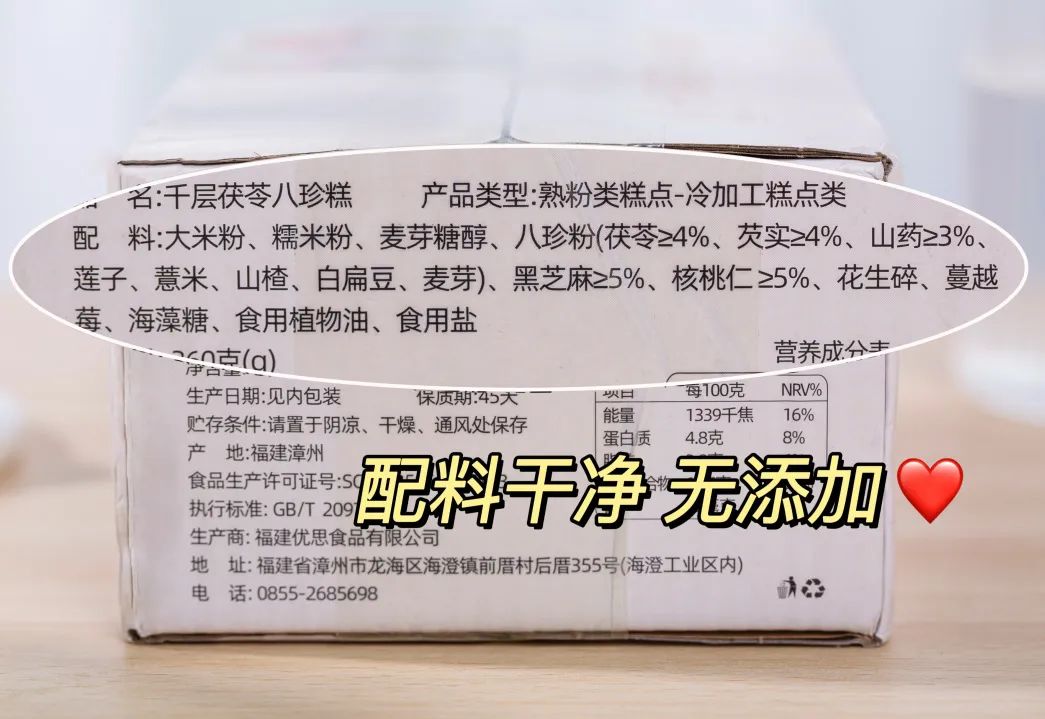 配料非常干净,没有任何食品添加剂、防腐剂,可以放心食用!