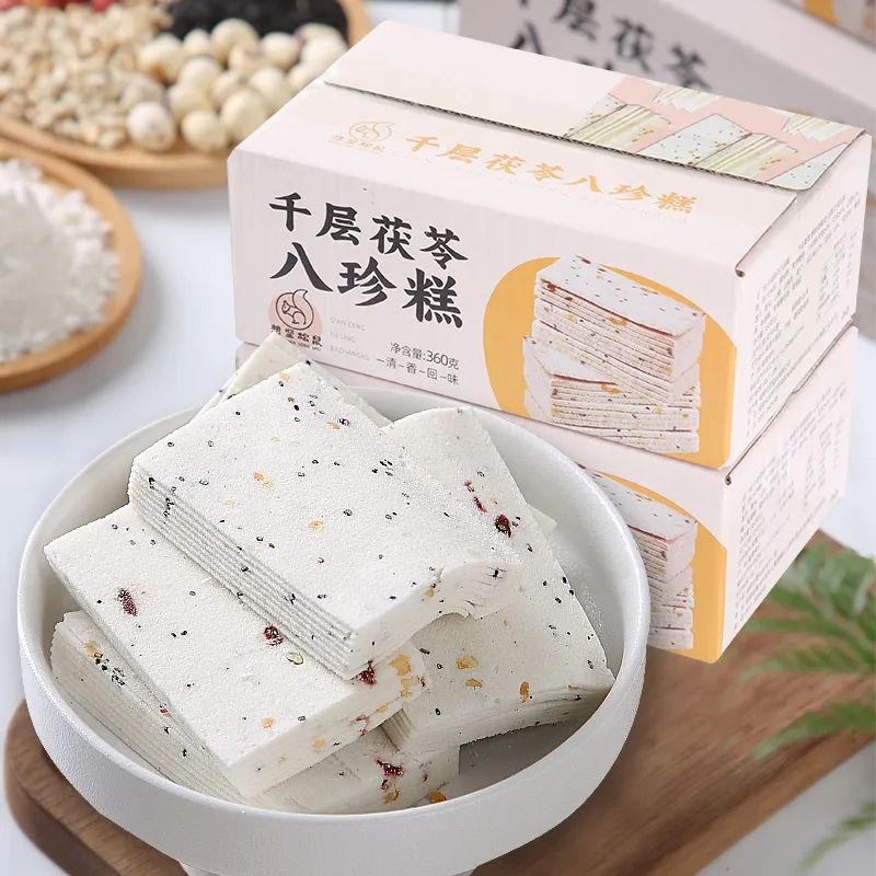 千层茯苓八珍糕就是古时八珍糕改良而来,很适合脾胃虚弱的人日常食用。