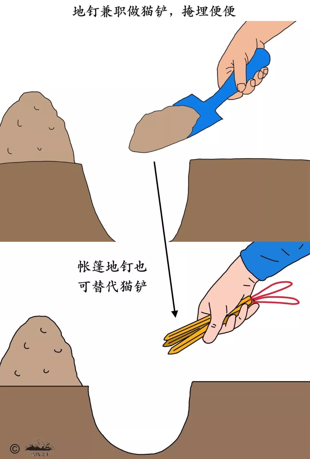 户外便便必须挖坑掩埋,携带铲子难免增重,你还可以用地钉替代,同样可以挖坑,还能节省重量。