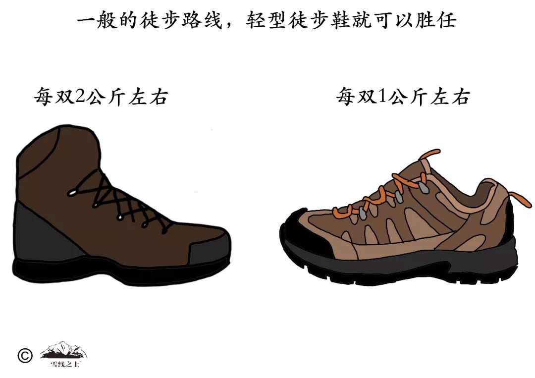 如果不是冰雪路线,只要合理控制背包重量,你就可以穿轻型徒步鞋,这会让你的双脚轻松很多。