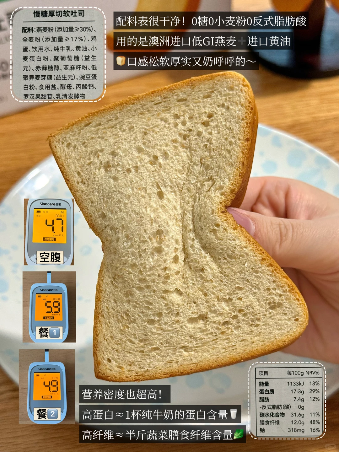 低GI0️⃣蔗糖,精选澳洲进口燕麦和纯正阳光全麦粉,100%优质慢碳水,同时高蛋白高纤维,控糖、孕妈、减脂人群都能放心吃!