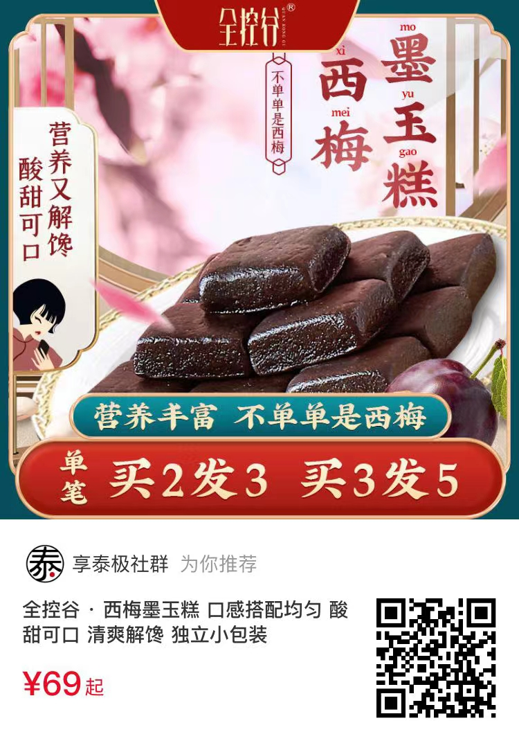 这款西梅糕,以优质新疆西梅为原料,经过提纯萃取其中有效成分,融合多重天然通便成分。