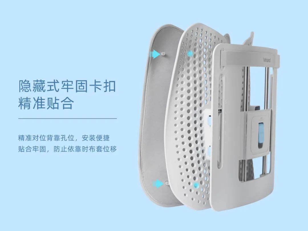 这款背靠,内置了一个升降机械结构,无需工具,轻轻一掰,就可以一键调节高度。