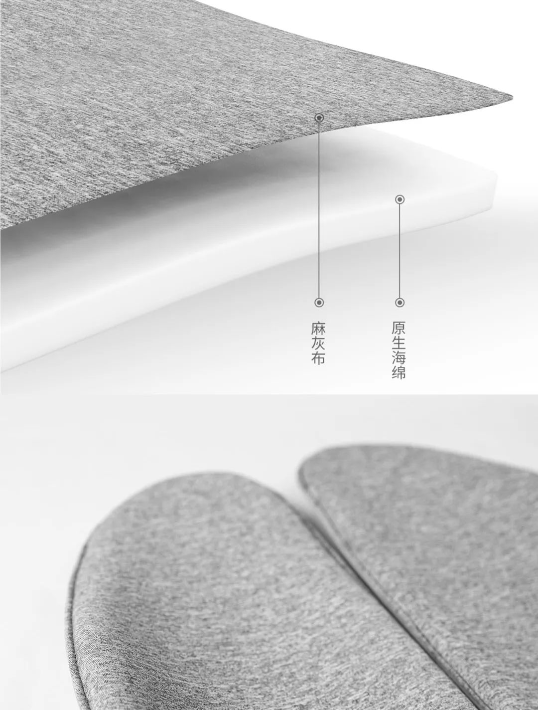 复合纤维制成的麻灰布面,平整有型,耐磨高弹,易洗易干。原生海绵在内部形成缓冲层。两种材料组合成型,不仅舒适柔软,而且亲肤透气。