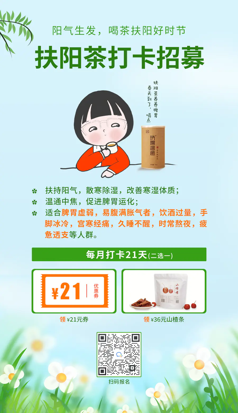 扶阳茶扶持阳气、化寒祛湿、温暖中焦、促进脾胃运化功能。