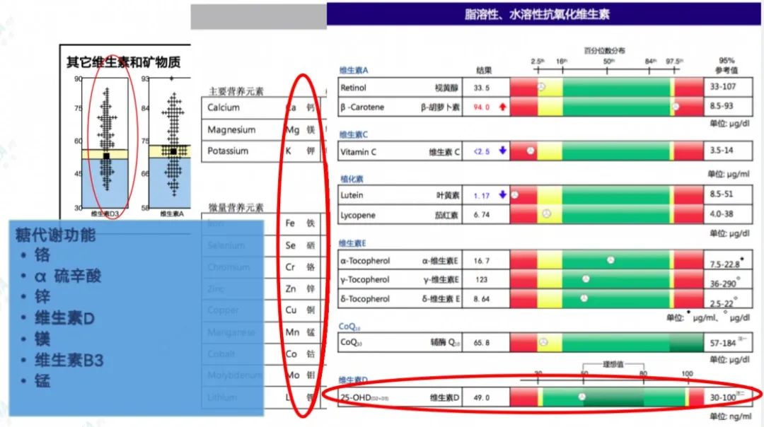 根据功能医学检测个性化评估患者体内微量营养失衡的情况后,功能医学的干预方案是针对性进行个性化的纠正和补充。下面列举了多个微量营养素有助于II型糖尿病和糖代谢,需注意避免盲目选用,进行个体化选用。