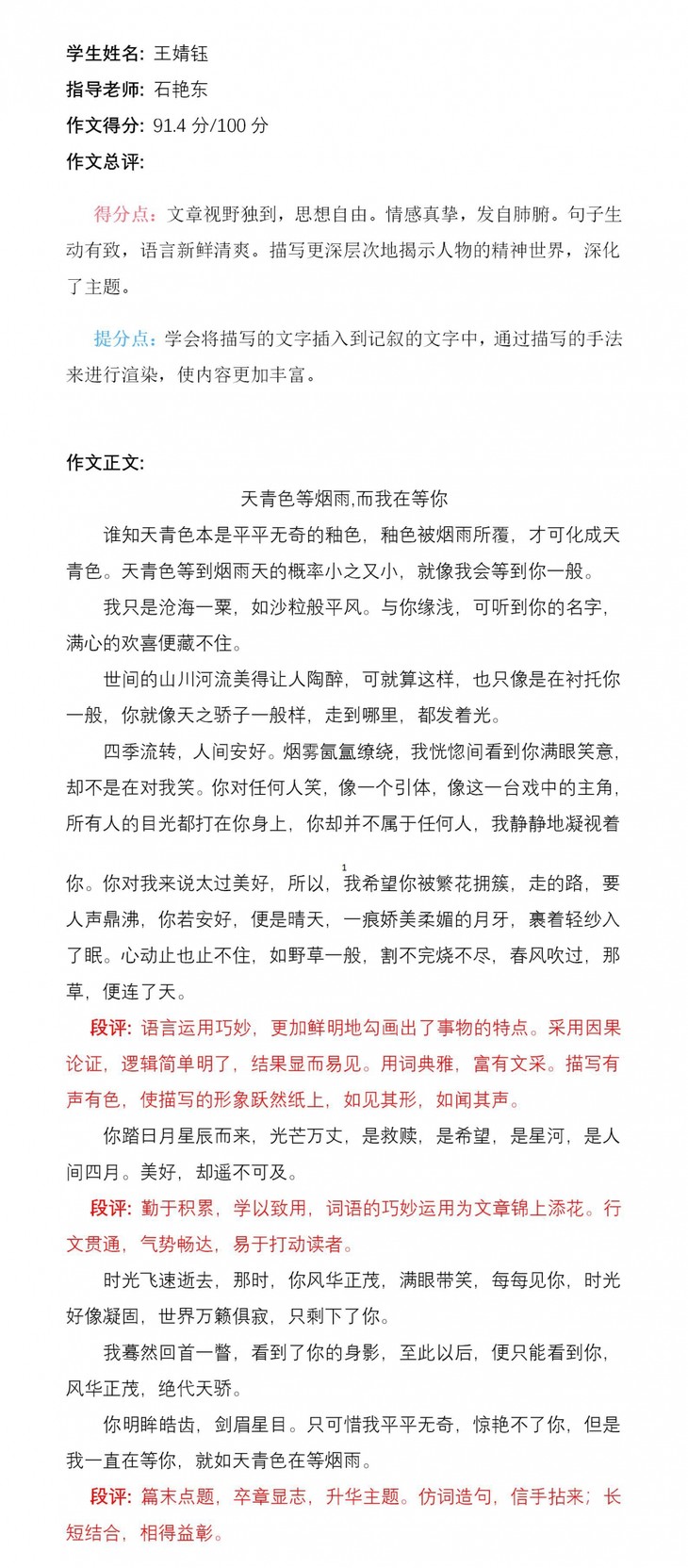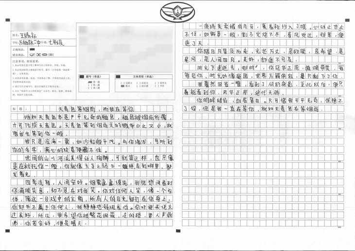 孩子从小爱好读书,长大便喜欢创作属于自己的文章,创作文章最主要的是富有想象力,这次选材和选题都是她自己所感悟到的。希望她可以在文学的道路上越走越远。