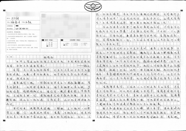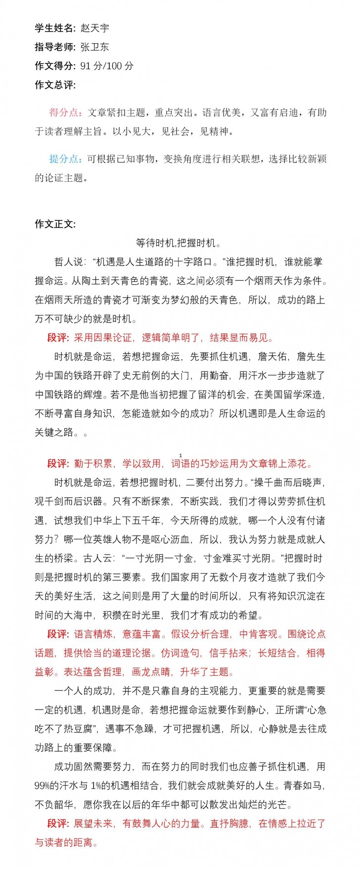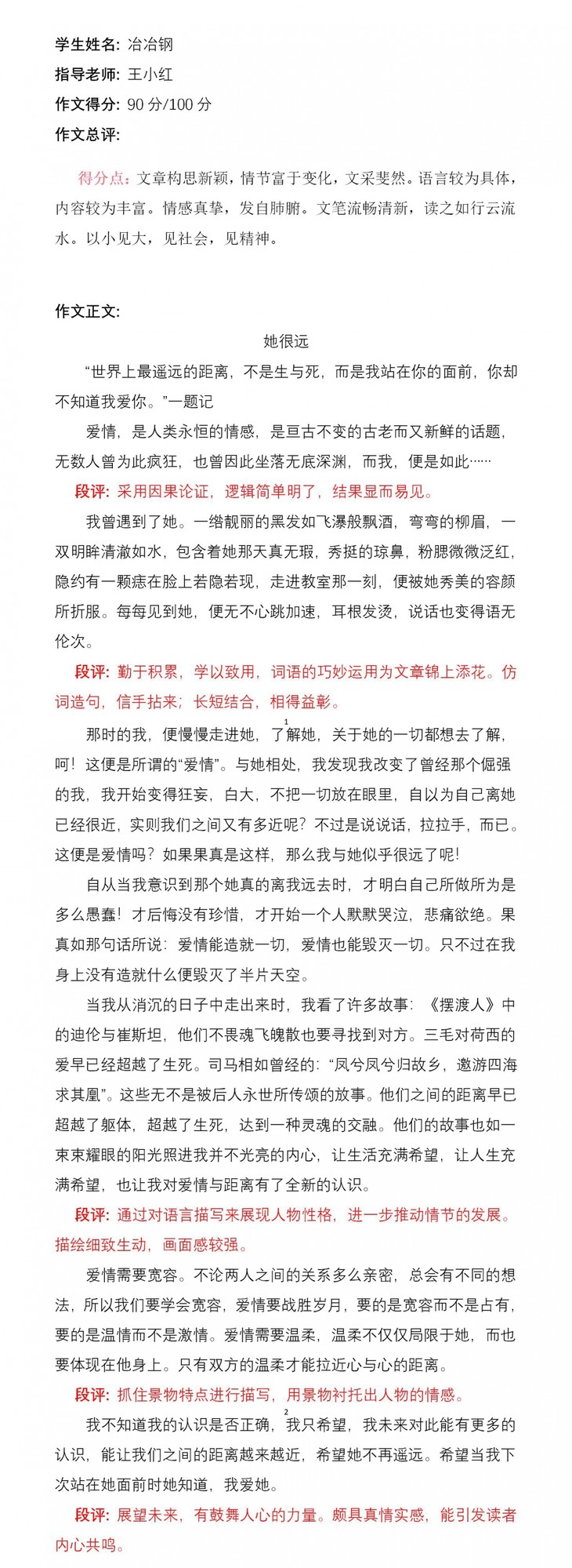 你是一个坚毅而聪颖的孩子,想象力丰富。老师希望你能乘着这次创新作文的东风,乘风破浪,在写作之路上收获满满!加油!老师一路支持你!