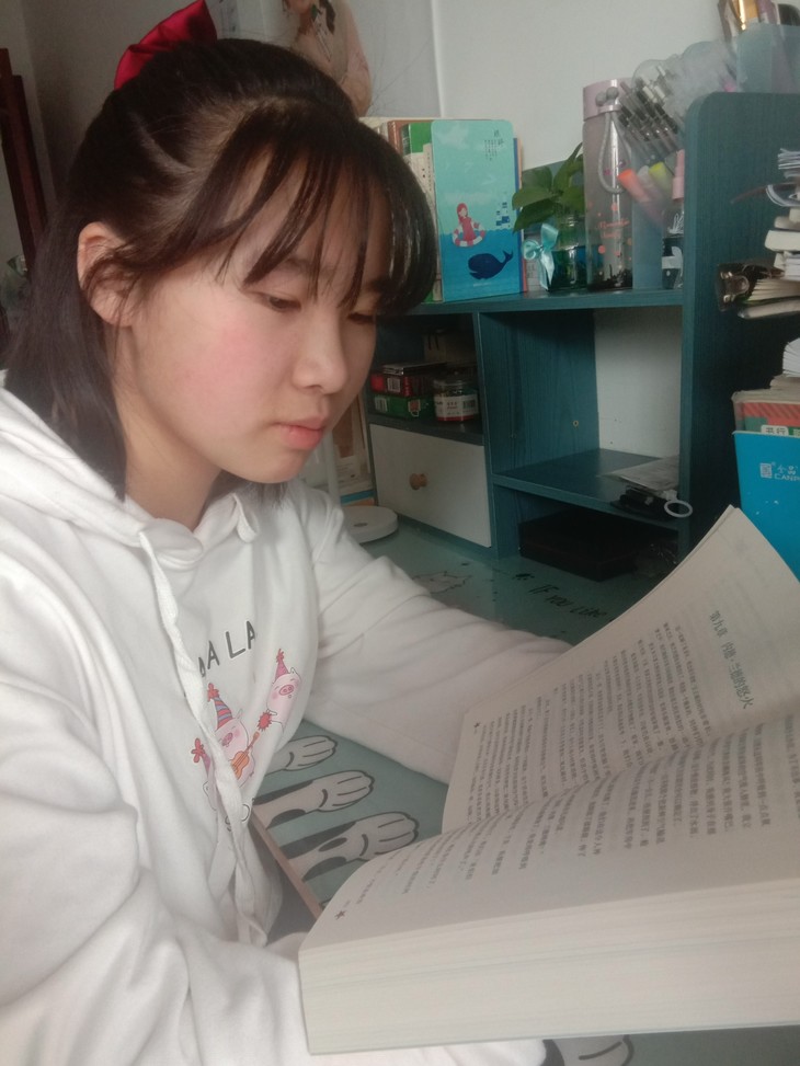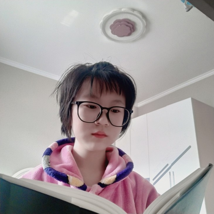 孩子从小比较喜欢看书,平时只要有时间就喜欢泡在图书馆,每次去都借上几本喜欢看的书。逐渐也爱上文学。她的写作水平还需提高,希望不忘初心,砥砺前行,获得更好的收获。