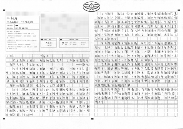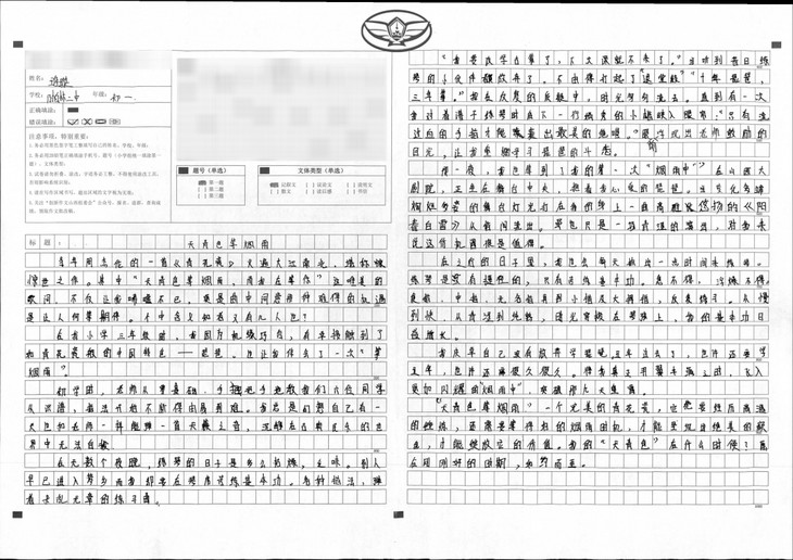 孩子平时对读书不是很感兴趣偶然间发现她买回了两本书,《城南旧事》和《呼兰河传》从她读完这两本书感觉渐渐喜欢上了读书,写作能力也得到了提高,这一次的写作无疑是她对长久阅读的回报这证明了学习没有捷径只有刻苦用功,愿你永远坚持下去不负青春,不负韶华。