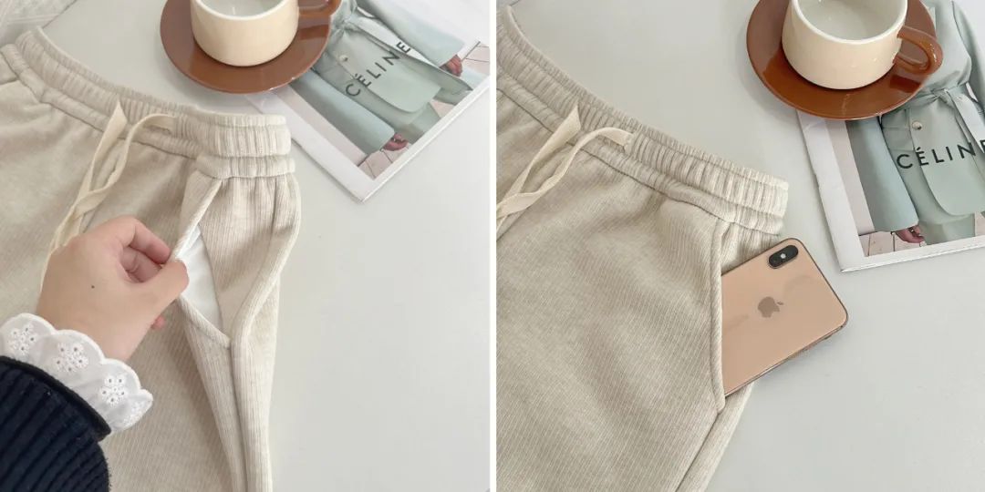 高腰设计还不动声色地拉长了腿部线条,尤其是把上衣塞进裤子里时,视觉上起码显高5-10cm!