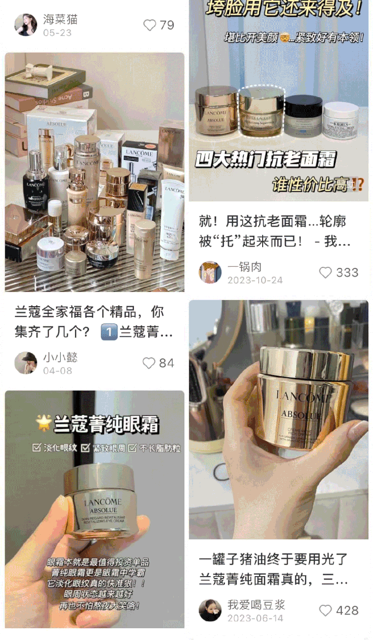 小red书随便上一搜,就有几十万+篇笔记。不管什么年龄段的姐妹都在用兰蔻菁纯!