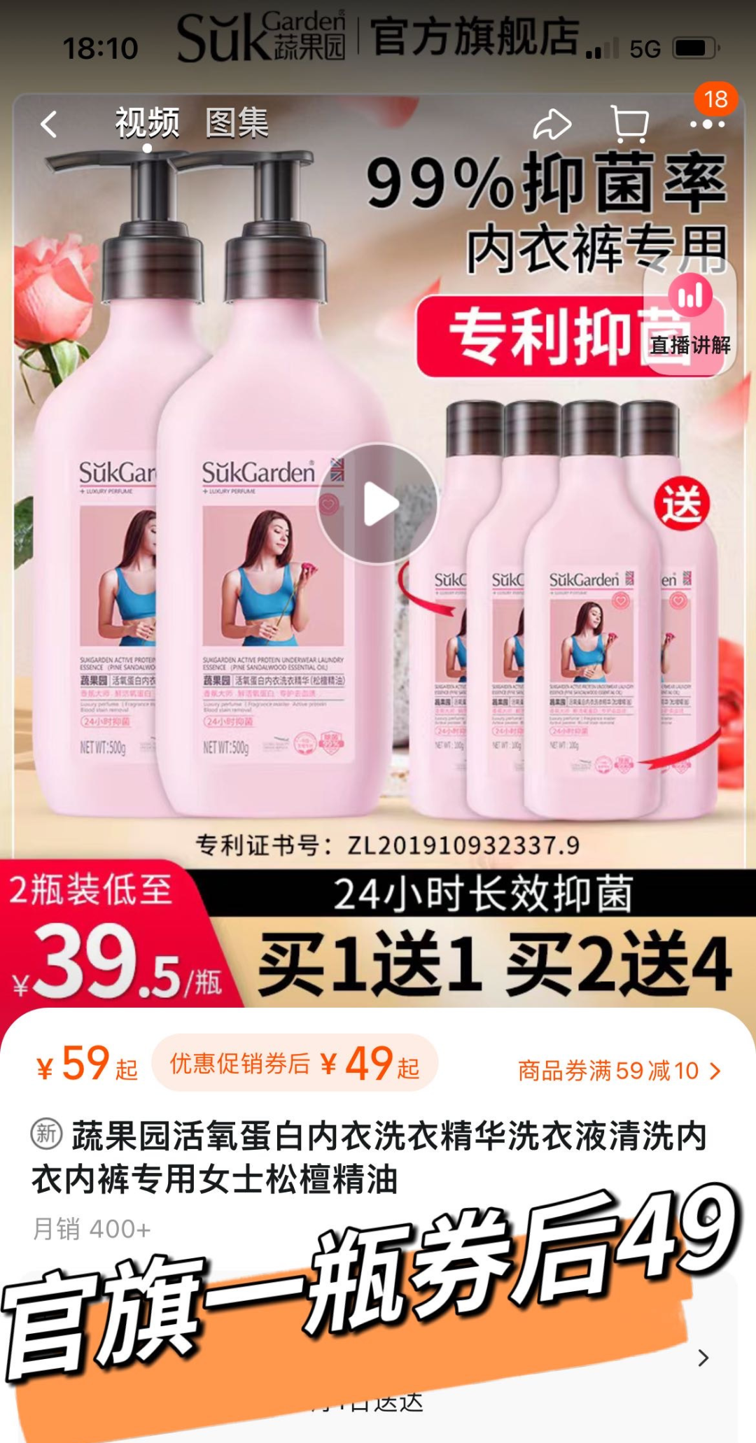 再不审视自己平常的卫生习惯,不仅影响正常生活,严重的还会要命!姐妹们事关私处都不是小事!清洗内裤用对方法很关键!专业的内衣洗衣液太重要了,今天就推荐这款蔬果园全新配方活氧蛋白内衣洗衣精华!特添加生物酵素配方,全新升级高活性鲜养蛋白精华配方,快速清除内衣裤血渍、黄渍问题!SukGarden蔬果园,是线上线下TOP家清品牌‼️巨多明星达人推荐过的‼️大牌出品,品质放心安心❤️这是一款真正好用的内衣清洗液!用过你就不会换其它品牌了!官旗一瓶59元,就连券后都要49元/瓶,一次买两瓶,算下来也要39.5元/瓶。我们今天超级大福利【买2送5】买两支500g+送5支100g,等于送多一支正装的量🙀