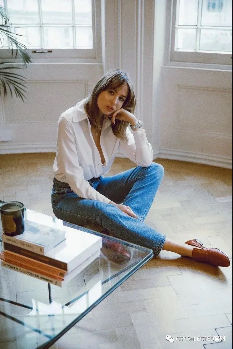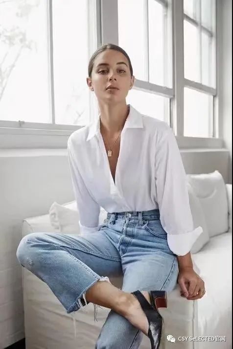 衬衫搭配牛仔裤,