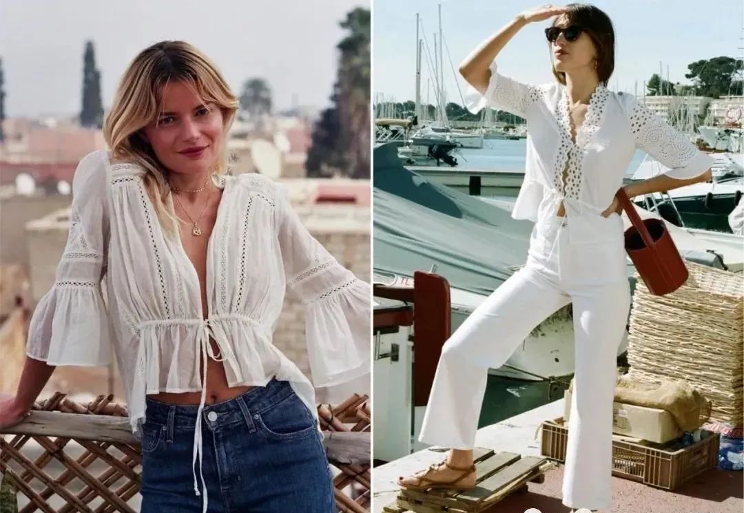 今年流行的各种镂空荷叶边蕾丝小上衣,