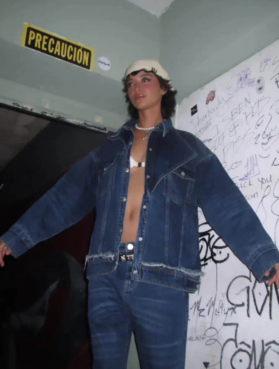 @复古水洗做旧猫须牛仔外套/牛仔裤