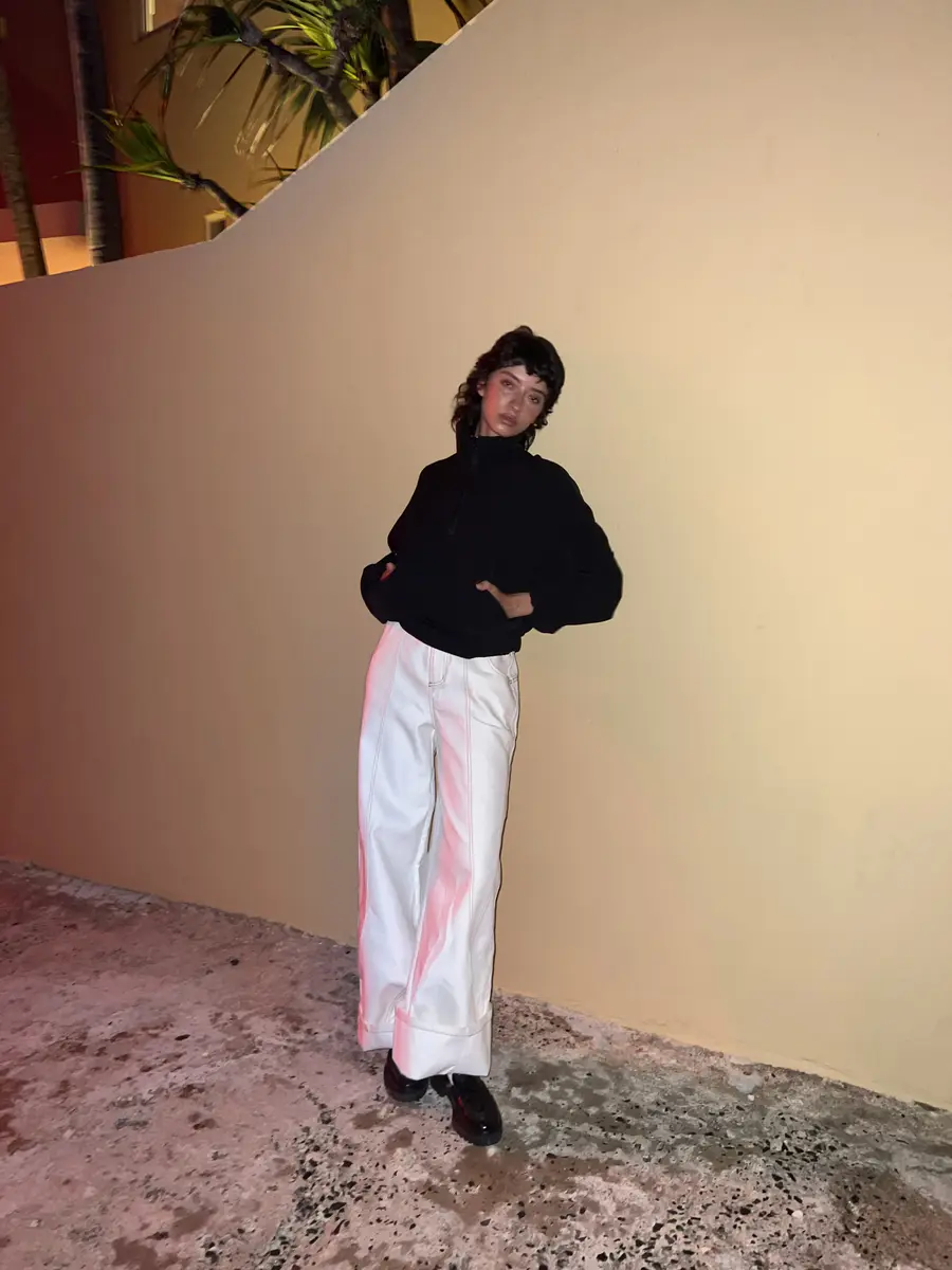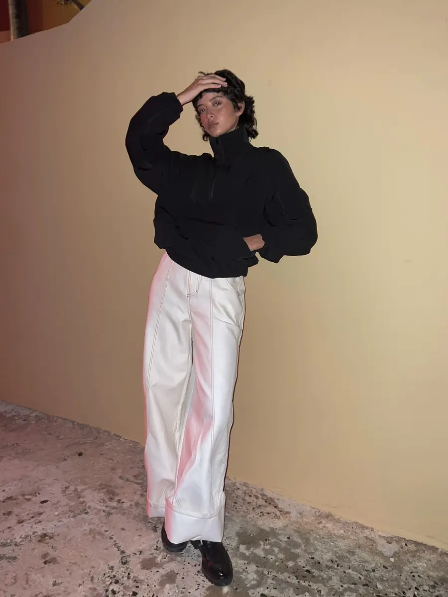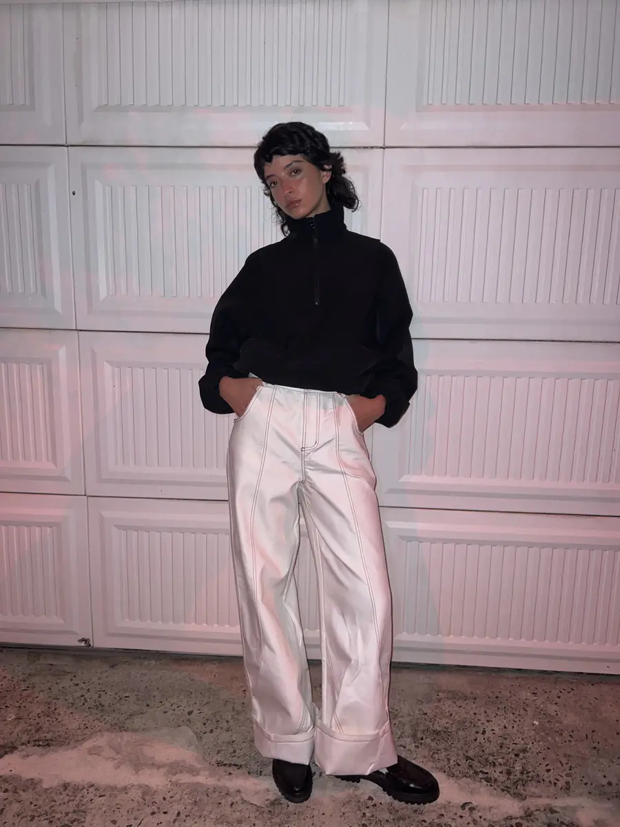 @”棘"白色异形扭转休闲裤