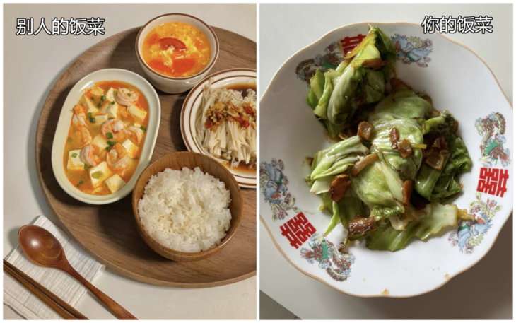 虽盛放同样的饭菜,
